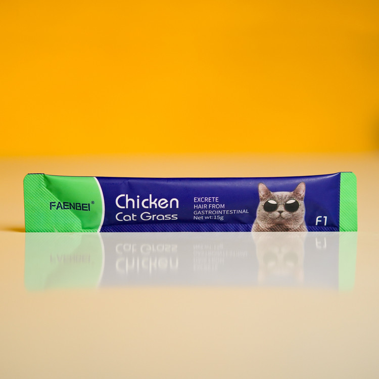این محصول طعم مرغ است که حاوی علف گربه برای دفع گلوله مویی از دستگاه گوارش می باشد و مانند نوعی مالت عمل میکند.