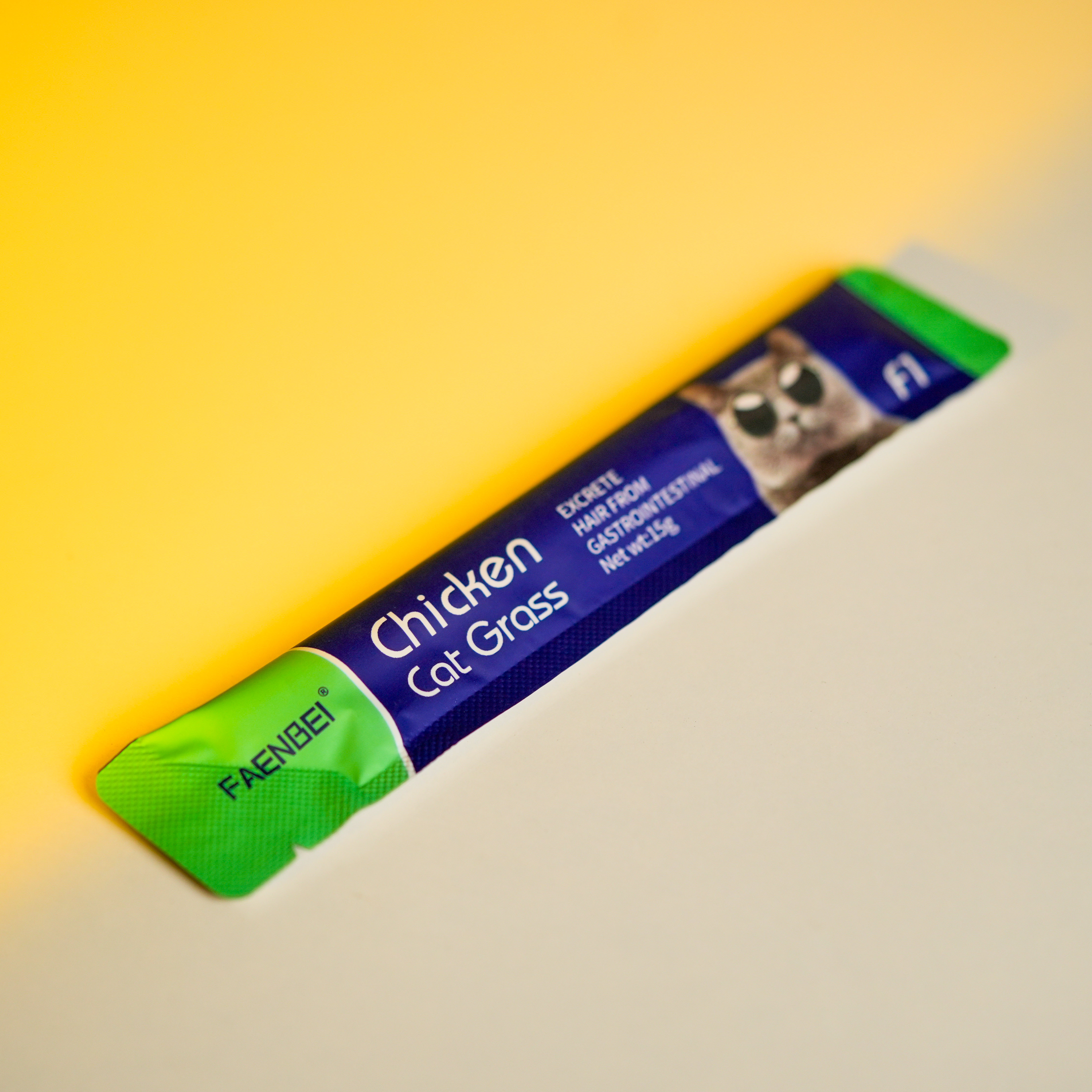 این محصول طعم مرغ است که حاوی علف گربه برای دفع گلوله مویی از دستگاه گوارش می باشد و مانند نوعی مالت عمل میکند.
