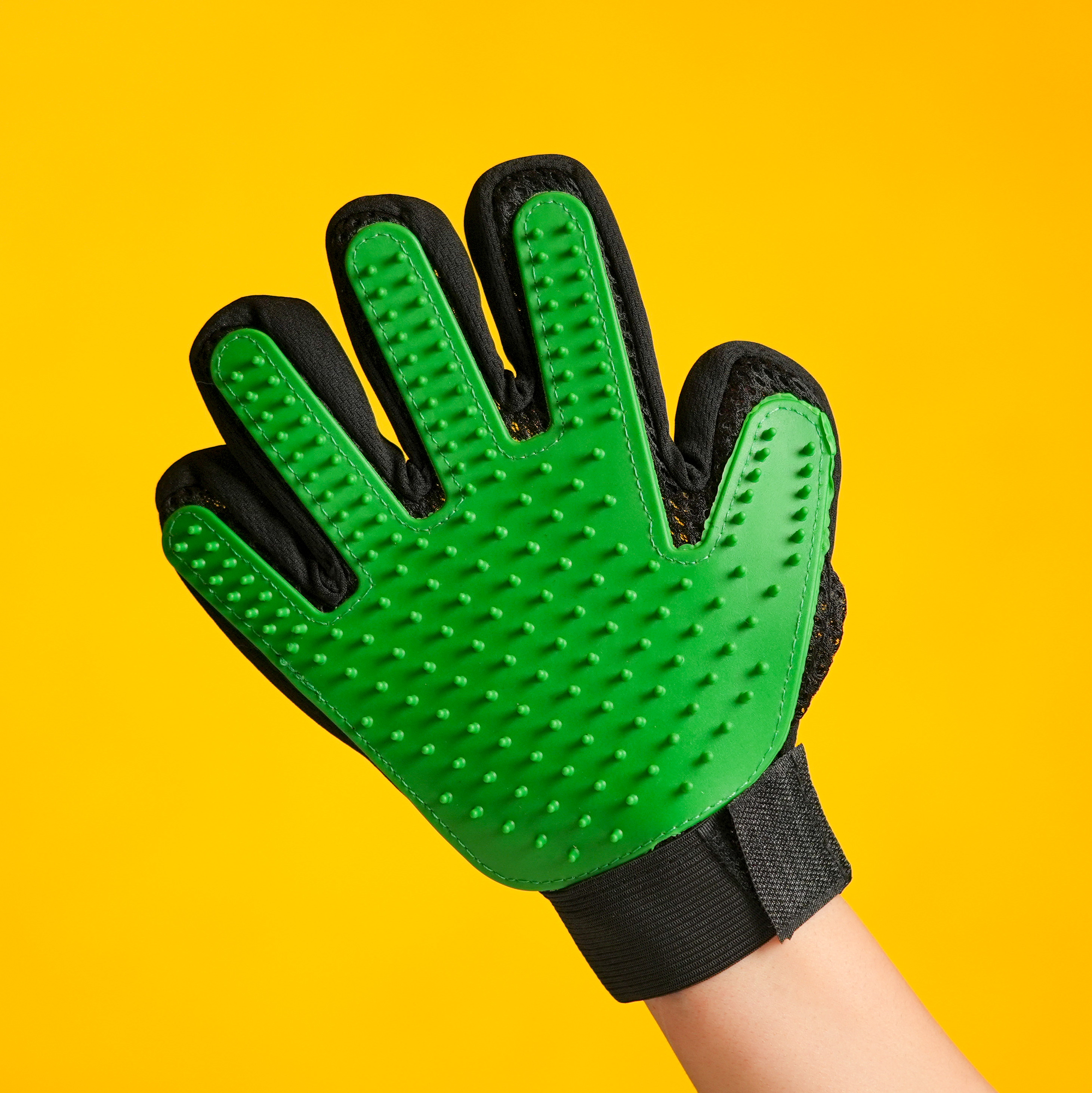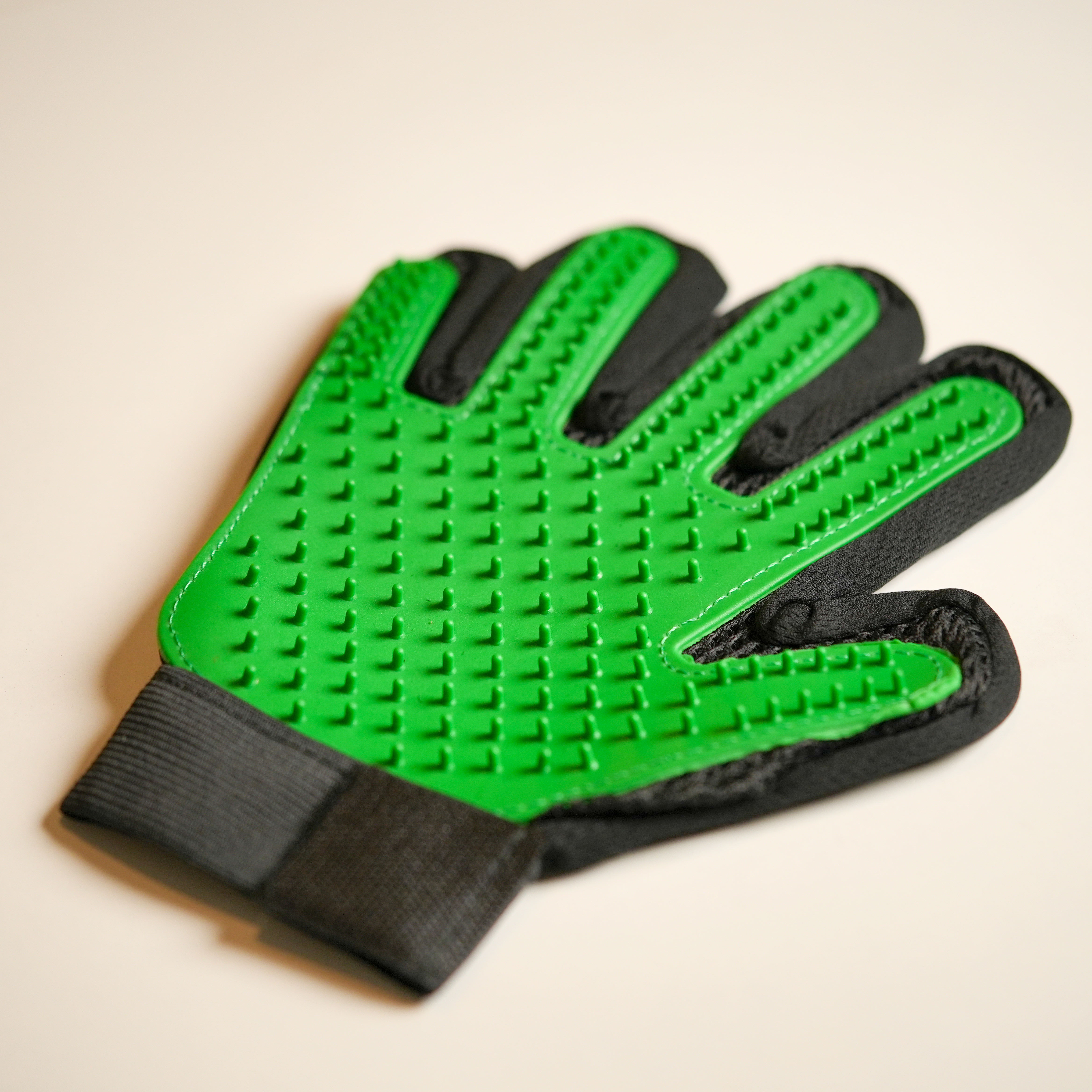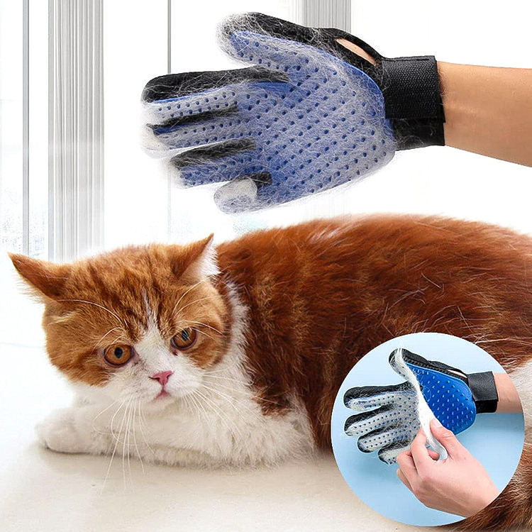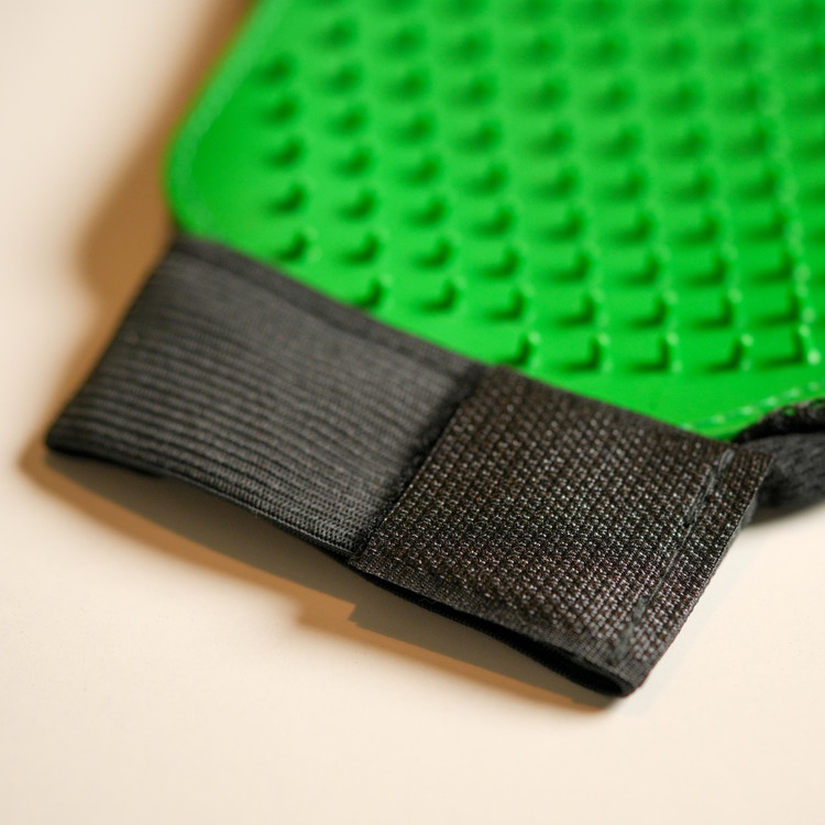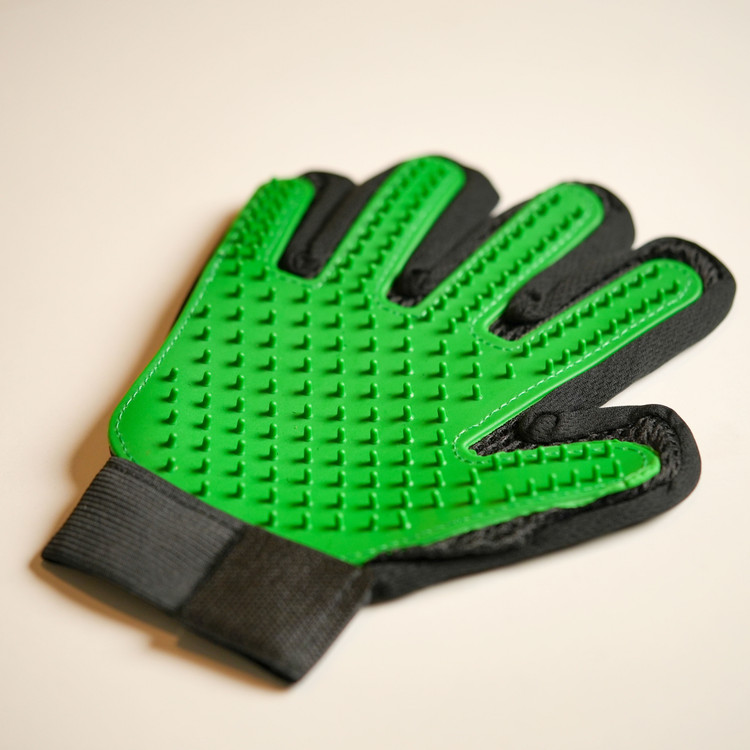 این دستکش از جنس سیلیکون است که بیش از 200 شاخه ی نرم دارد که هم برای ماساژ هم برای جمع آوری موهای مرده از روی بدن گربه مناسب است همچنین می توانید در شستشوی گربه از آن استفاده کنید.موهای اضافی به راحتی و به صورت لایه ای از روی دستکش جمع اوری می شود.
