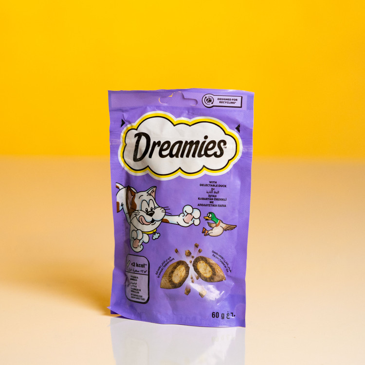 برند تشویقی دریمیز بسیار خوش خوراک و محبوب بین گربه هاست ، روکش ترد و کرانچی و مغز نرم و لذیذ آن باعث علاقه ی گربه هاست.