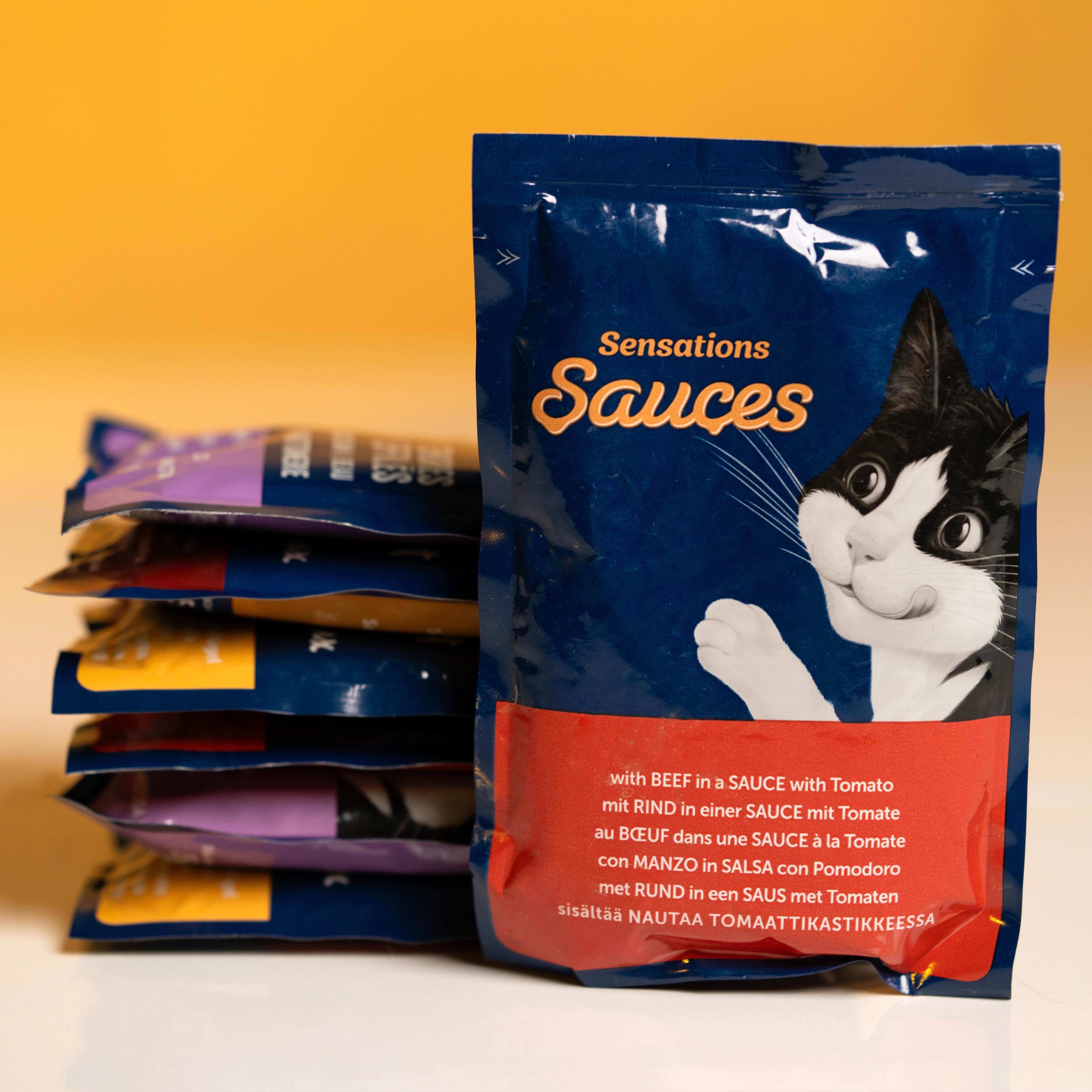 پوچ گربه فلیکس طعم گوشت گاو در سس گوجه